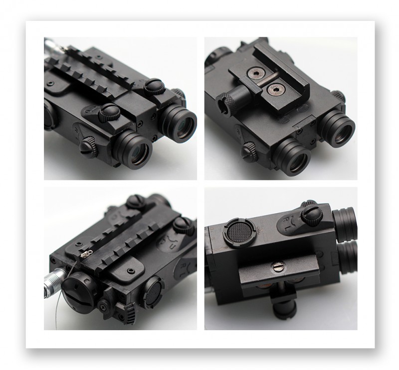 方形雙激光指示器產品,專業設計用于步槍的瞄準用。其中激光瞄準組合分為紅光+綠光、紅光+紅外激光和綠光+紅外激光三種工作模式。激光瞄準的偏差和高度可根據具體使用環境和槍形進行調整。產品采用國際軍規標準航空鋁合金材質(6061-T6), 高質量激光模組,防水、防震,防沖擊。自配皮卡汀尼導軌卡口,適用于所有含此導軌的槍形,快速斷路系統允許用戶立即安裝和拆卸。成功通過防水測試,重擊測試和武器反沖測試。國內常用于95式、79式等及其他含皮卡汀尼導軌的設備。產品自配鼠尾遙控開關,方便遠程操作。