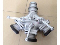 分水器主要裝配于水帶干線上,一個分水器有一個口和兩個及兩個以上出水口,可以同時使用,也可以分別使用,出水口上均有閥門裝置,可以隨時開啟和關閉,控制水流,便于調換支線配件。進口80\出口65*3
