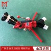 1使用:將攻擊炮的支撐腳分別展開(kāi)90°,待固定銷(xiāo)彈開(kāi)后安放在平整且表面較粗糙的地面上,使四個(gè)尖錐盡可能插入地表面,并盡可能將輔助安全帶系在搖擺炮周?chē)墓潭ㄔO(shè)施上。關(guān)閉搖擺炮的閥門(mén),調(diào)整炮的俯仰角盡可能≥30°。接上供水水帶,慢慢打開(kāi)炮的閥門(mén),使其達(dá)到額定的噴射流量和額定工作壓力,即可進(jìn)行消防滅火作業(yè)。