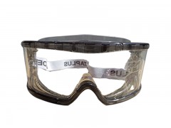 透明聚碳酸酯防化防霧護目鏡,灰色PVC鏡框。防刮擦,防霧。