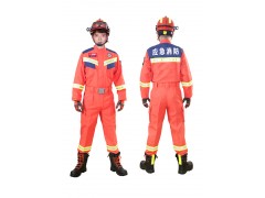 詳細信息 消防員搶險救援服裝是消防隊員在搶險救援和演習時穿著的防護服裝。亦可作為消防員進行滅火戰斗時穿著的普通防護服裝和工礦企業職工生產易燃產品的專用防護服裝。經國家消防產品質量監督檢驗中心檢驗合格,符合XF633-2006《消防員搶險救援防護服裝》標準要求。搶險救援服裝為分體式,分別由上裝和下裝組成。顏色為橘紅色,潘通色號為 PANTONE 17-1456 TCX Tigerlily,深火焰藍色,潘通色號為 PANTONE 19-3938 TCX,并設有反光標志帶,夏款搶險救援服采用雙層結構織法,采用進口原液芳綸橘紅面料,具有外防內吸、具備彈性、防靜電、阻燃、輕便、抗拉力強等性能。冬款搶險救援服由外層、防水透氣層和舒適層三層結構組成。外層采用原液橘紅芳綸,防撕裂格子織法面料,具有防水、防靜電、阻燃、輕便、抗拉力強等性能。防水透氣層采用芳綸無紡布覆PTFE膜面料,能防止水及其它一般化學液態的滲入,又能將滅火救援時體內產生的大量熱氣及時排出。舒適層采用50%芳綸+50%阻燃粘膠纖維混紡面料。