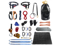 10.5mm靜力繩 、8字環 、D型鉤 、O型安全鉤、1.8m雞爪繩、120cm成型扁帶、繩索救援手套、運輸滑輪、單向滑輪1個(移動式側板)、手式上升器 (具有解鎖開關)、防脫繩腳式上升器(具有鎖定系統)、胸式上升器套件、抓繩器、下降器 、墊布、專用器材包(圓筒雙肩背包)、腳踏帶、止墜器套裝