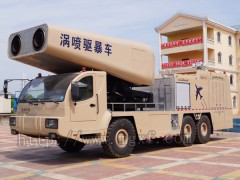 Strong Riot Control Vehicle is a new generation dispersing equipment which is independent research and development by Haomiao Technology Company. It adopts special chassis and load one or two units of aviation turbojet engine. The power is more than 10,000 KW. The turbojet engine burns rapidly and produce jet stream, ultrahigh temperature and ultrastrong sound source. These will be strong psychological impact to rioters. The water tank loads large tonnage and no damage liquid water, use jet stream as carrier which is produced by turbojet engine, sprays by huge kinetic energy and high strength. Moment shooting distance is not less than 120m. This vehicle is strong non damage equipment for currently abroad to deal with riots and clean up the site. It also can add coloring agent to carry out smokescreen. Discharge smoke is not less than 15,000 M2, it is the choice of field forces when proceeding hidden work.