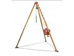 3.三腳架配有手動彩鋅絞盤并能安裝在三腳架任意一支架撐腳上。由彩鋅1800磅絞盤組成,絞盤采用半圓頭方徑螺栓和胡碟形鋼絲繩壓板結構,具備搖速均勻不會有頓挫,不會產生瞬間不受控制現象。