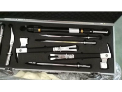 手動破拆工具組是一套一桿多用型救援工具、適合在不同環境及情況下發揮功能。適合救援車、消防隊、特警隊(破門)、特發事故拯救等;救援工作必備。滑動桿可以配合五款不同強化鍛鋼工具使用,以適應不同需求;例如:撕開金屬片(如汽車、飛機外殼)、破開磚墻、門較、鎖、大門等等,也可除去障礙硬物。當不加設特別工具時,滑動桿尾部也可作強力拷打工具之用。