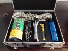 應急箱由20米自救繩一根,逃生面罩一個,消防腰帶一根,搶險救援手套一副,小手電一個,滅火器一個組成,用于自我防備,應急逃生,自我保護。