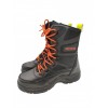 1.17式消防員搶險救援防護靴為高腰系帶結構,內懷設有快速穿脫功能拉鏈,主體顏色為黑色,楦型為三型半,靴面主體材料為黑色防水阻燃頭層黃牛鞋面革和防水阻燃帆布,靴底為橡膠聚氨酯雙密度底,總體性能符合《GA633消防員搶險救援服裝》的標準。通過國家級檢測機構檢驗并有完整檢驗報告。