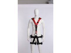 全身安全吊帶由織帶、前部拉環(huán)、后背拉環(huán)、后背襯墊、帶扣和胸式上升器等零部件組成。