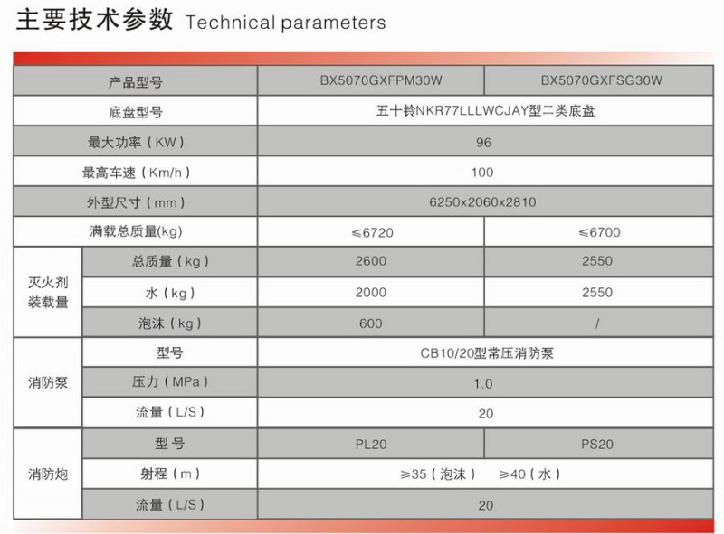 供應(yīng):BX5070GXFPM30W型泡沫消防車/BX5070GXFSG30W型水罐消防車