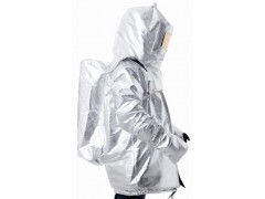 設計有用于容納呼吸設備的后背包的夾克。帶有前開口、FR Velcro®內部假扣,同樣用FR Velcro®封閉的防護帶,便于移動的中式領和袖套。