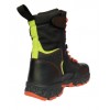 搶險救援防護靴為高幫系帶結構,內側設有快速穿脫功能拉鏈,主體顏色為黑色,靴面主體材料為黑色防水頭層黃牛鞋面革和1000D防水尼龍布。由外底、帶舒適層的靴幫、帶防刺穿層的內底和保護靴頭等部分組成的系帶式中筒靴。總體性能符合《GA633消防員搶險救援服裝》標準。消防員搶險救援靴靴幫材料在經過反復彎折20000次后,無裂紋、松面、掉漿等現象,允許有死折。在溫度為(180±5)℃條件下,經5min后,消防員搶險救援靴上任何部件不產生熔滴,所有硬質附件應保持性能完好。