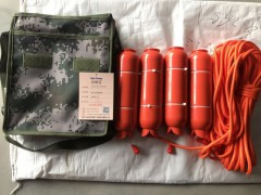 配置:手拋彈頭X4個 水域救援繩X1根 水域救援手環(huán)X1個 安全鉤X1個