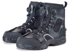 水域救援靴,高幫設計保護腳踝,旋鈕式系帶,進口合成皮革及5mm氯丁橡膠內里,提供保暖及舒適性。橡膠大底,凱夫拉防穿刺中底,鞋舌及后跟橡膠增強耐磨損強度及腳蹼卡位,使救援人員在溪谷、礁石、青苔、亂石間如履平地,鞋底具有防穿刺功能。特別適合在山澗、溪谷、內澇等環境使用。