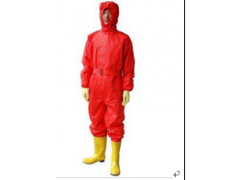 采用經阻燃增處理的錦絲綢布,雙面涂覆阻燃防化面膠,制成遇火只產生炭化,不常人溶滴,又能保持良好強度的膠布作為主材,經貼合-縫制-貼條工藝制成服裝主體和手套,并配以阻燃、防化、耐電壓、抗刺穿靴構成成套服裝。