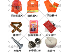 消防服、消防斧頭、消防頭盔、消防手套、消防鞋、消防面具、消防扳手、滅火毯、手提廣播、緊急逃生繩、消防鐵管。