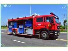 采用單排駕駛室的汕德卡ZZ5206N471GF5消防車底盤,發動機功率257kW,動力強勁,質量安全可靠。駕駛室為原裝四門雙排座,總乘員人數達2+4人,適合消防作戰編組集中投送。