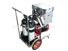 3、移動氣源配有30米供氣管1根,10米供氣管2根,最大迭加長度為50米。30米管上配有Y型三通一只,可以供2個人員同時使用移動氣源的壓縮空氣。